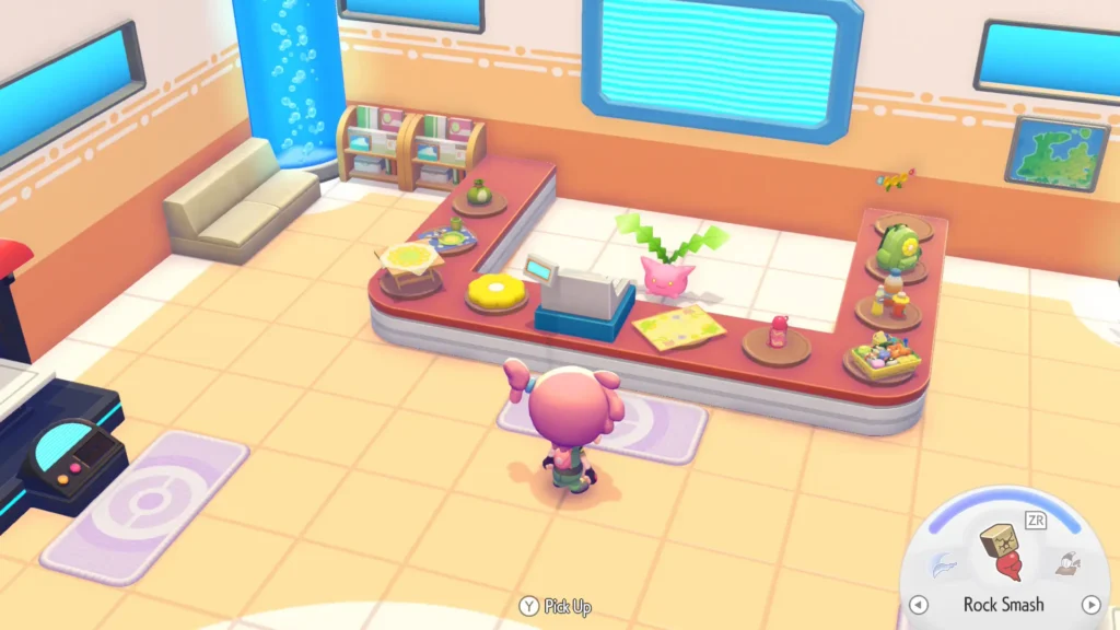 Once you’ve met Hoppip and it sets up in your Pokémon Centre/s, it’ll have a variety of decoration items to sell you, but instead of coins you’ll be asked to pay in Cotton Spores. These are the items that Hoppip sells and their cost in spores (left to right in the image):