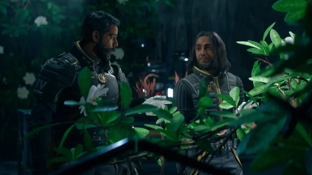 Carcosa is a planet rich in an incredibly unique and valuable resource known as Lucenite, and you don’t just discover this sort of thing without sparking a corporate interest. And so we meet Arjun (played by the very handsome and talented Rahul Kohli), an Enforcer with a vastly powerful company by the name of Soltari, sent to Carcosa along with a full complement of crew to check on the progress made by the three expeditions before them. On arrival though, things aren’t quite what anyone expected, and the other Echelon crews are nowhere to be seen. So, with his own team dwindling in number and a personal interest that he’s kept hidden from his peers and employer, Arjun must set out into the wilds and ruins of this world, littered with perils, traps and all manner of flora, fauna and machines ready to kill him.