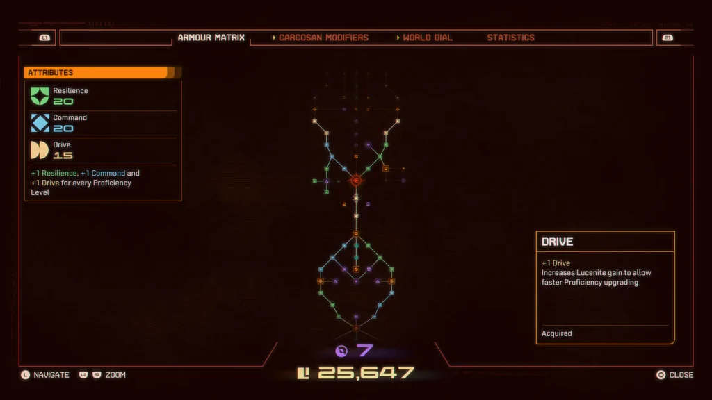 The game’s tagline of “Come Back Stronger” manifests itself in a number of ways, principally when it comes to its rogue-ish cycle of heading out into Carcosa and progressing as far as one (or, eventually multiple) deaths will allow before returning to your base at The Passage. Whether in victory or defeat, coming home means resetting your stats and gear, but keeping either or all or a portion of your collected Lucenite. This is then spent on a massive skill tree to increase your baseline effectiveness across a few key areas, meaning that every time you head back out you’re doing so with at least a little more oomph at the outset.